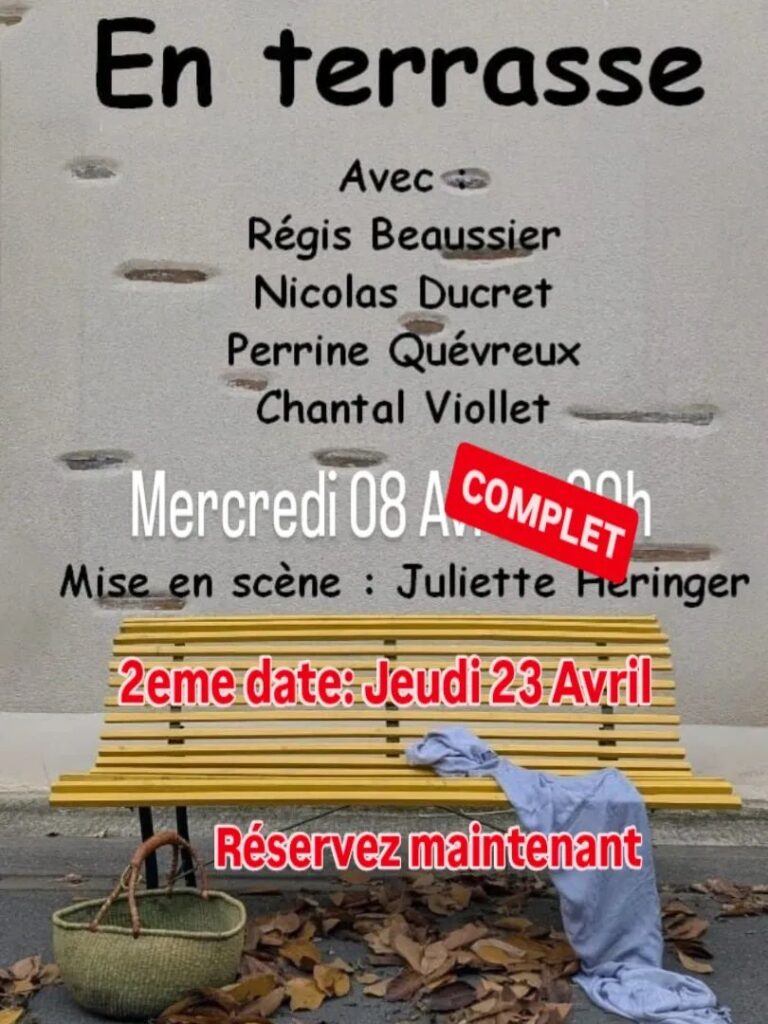 « En Terrasse » est une comédie moderne, glaçante, grinçante où l humour noir trône et surtout où rien n est à prendre au premier degré. Il fallait oser, ils le font et vous êtes avertis.